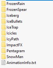 Each folder contains both individual animations per spell, and a combined sprite atlas per spell