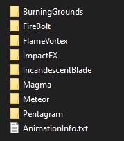 These animations were done in a 32x32 canvas but most of them are smaller (Fire Bolt Level 1 is 5x7 / FireBolt Lvl2 is 9x3 etc etc)