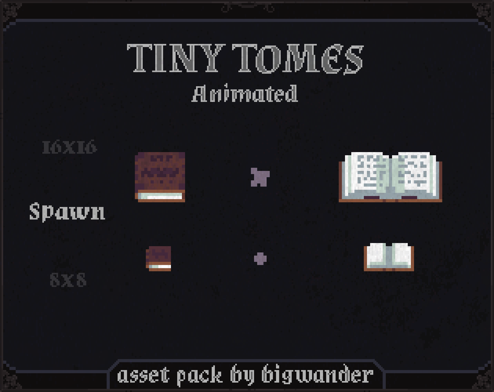 This pack includes a total of 15 spell book types in two variants, 8x8 and 16x16: